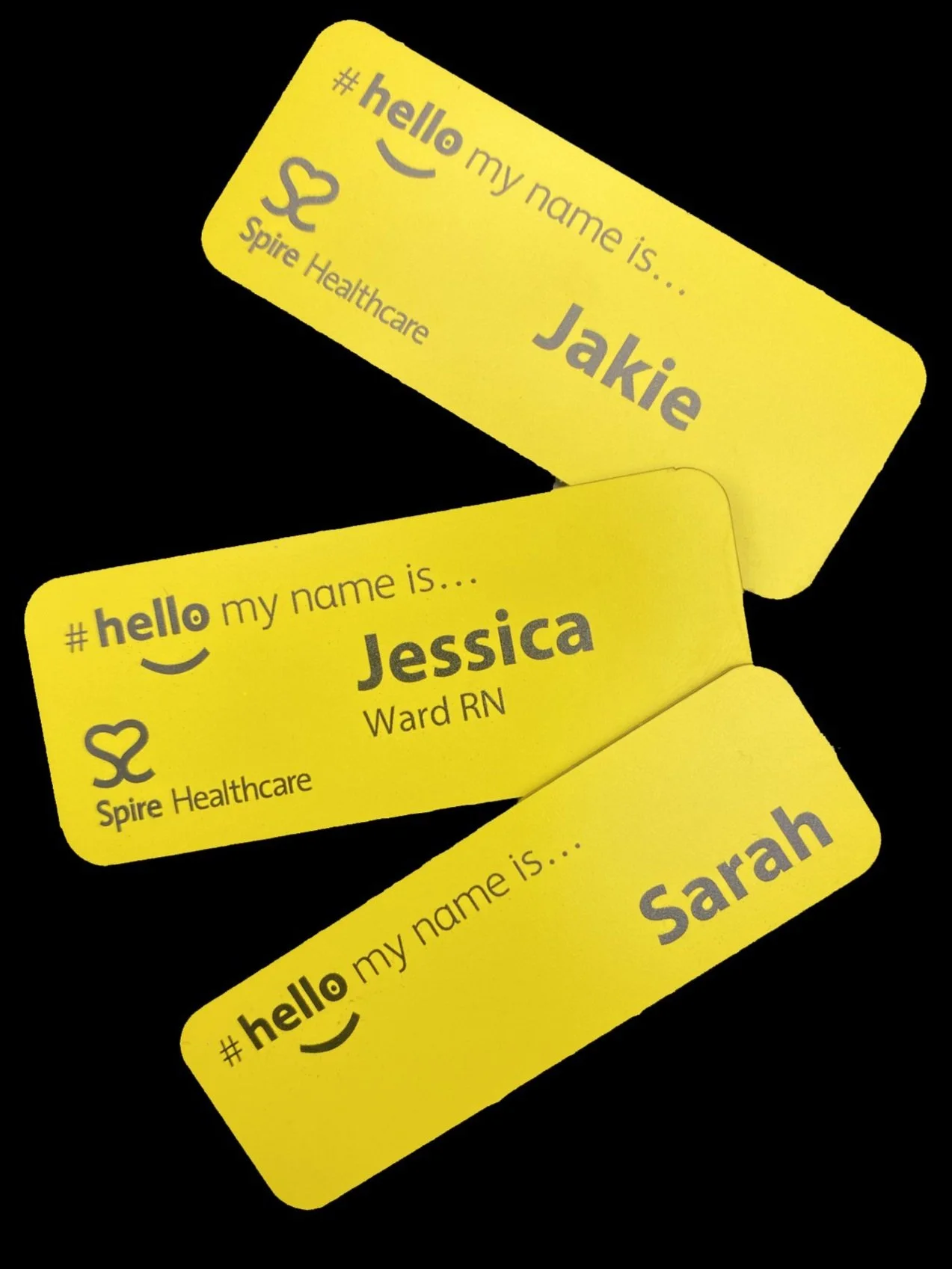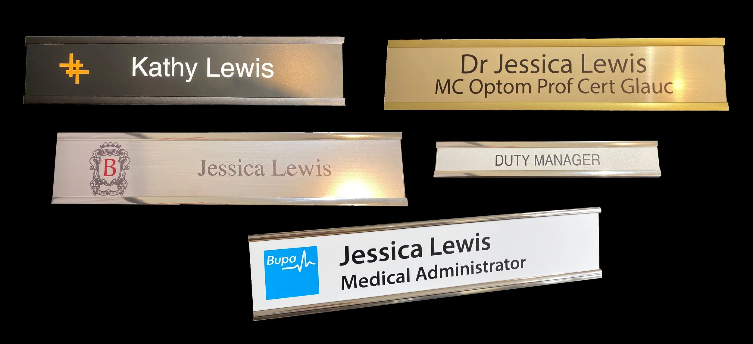 Door / Desk name plate holders and inserts, printed with your choice of text and Spire Logo